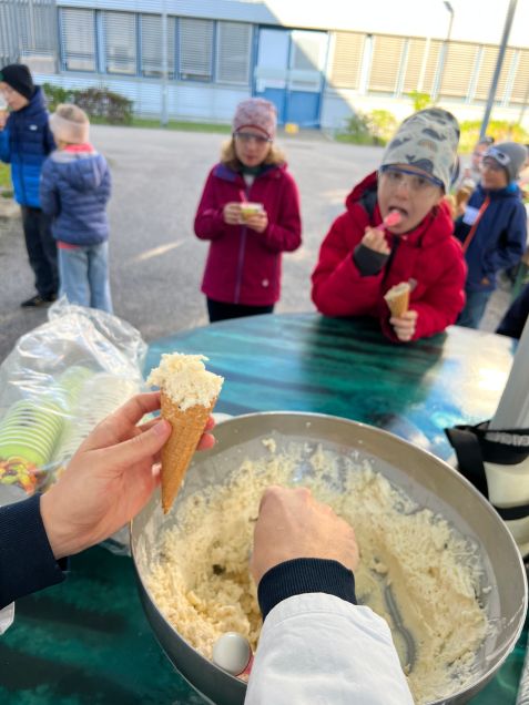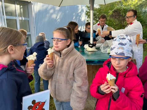 The banana ice cream served after the demonstration of experiments with nitrogen tastes delicious. © FRM II