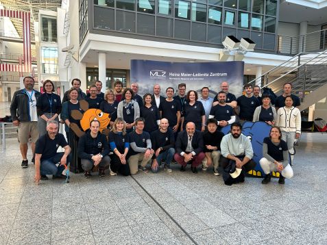 Even after the tours, there was still plenty to discover at the FRM II and MLZ stands at TUM Maschinenwesen: visitors could immerse themselves in the reactor pool with VR glasses or build their own scientific instrument. For younger guests, there was a neutron audio play, games about neutrons, a painting and craft corner, and the opportunity to measure natural radioactivity at the research neutron source booth. Models of scientific instruments, a cloud chamber, a job wall with current job openings at FRM II, and a photo wall featuring the mouse and elephant from the WDR children’s series rounded out the offerings.