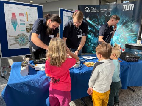 Around 1,000 people gathered at the interactive stands in the mechanical engineering department of the Technical University of Munich (TUM) on German Unity Day. In addition to the FRM II research neutron source and the Heinz Maier-Leibnitz Center, ITM Radiopharma, the Society for Nuclear Services, and the TUM School of Natural Sciences also presented themselves here. The two lectures on physics and chemistry were crowd pullers, each attracting 500 spectators, as were the guided tours of the FRM II, which were attended by a total of 246 adults and 88 children.