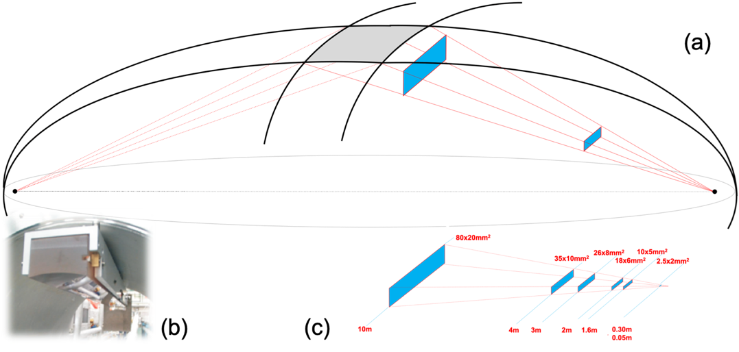 ‘VerySANS’ is a focussing instrument. Unlike at a pinhole SANS instrument, we can not improve the dynamical range (Qmax/Qmin) by moving the detector: the position of the KWS-3 detector is fixed in the right focus as shown in fig. 1. At KWS-3, we extend the dynamical range by ‘replicating’ of the sample positions at different distances between the sample and the detector (fig. 2).