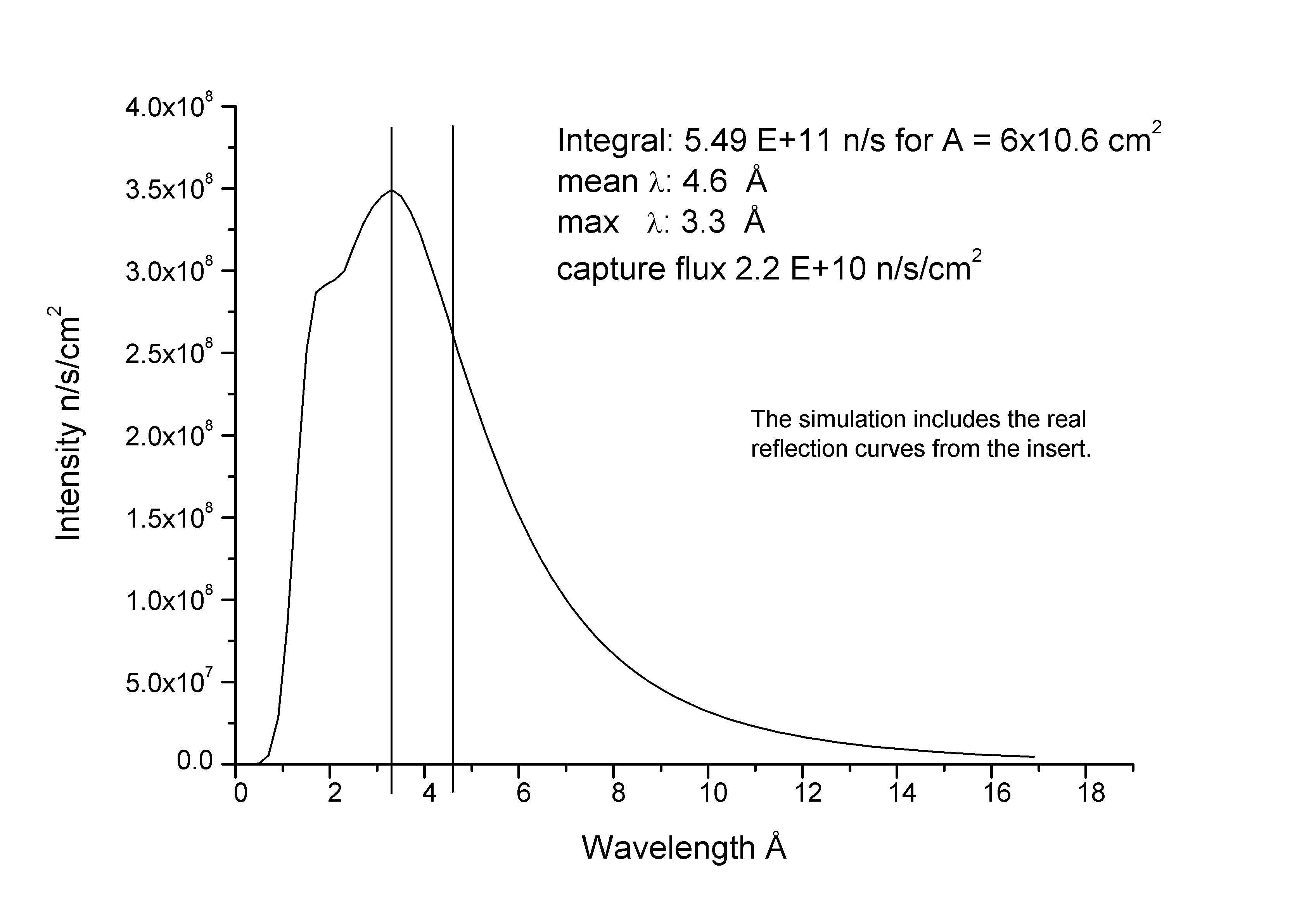 The MC-simulation for this beam with a dimension of 60 × 106 mm² proposes a mean wavelength of 4.5 Å and a gold capture flux of 2 ×1010 n cm-1 s-1. The experimental area is 5 × 25 m², diagonally built-in in the Neutron Guide Hall East. The spectrum shows a shoulder to smaller wavelengths, and the maximum of the spectrum is located at 3.3 Å.